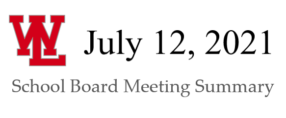 This is not the official minutes from the school board meetings. I am a parent of WLCSC students and my thoughts are given in italics. Previous agendas, minutes, and audio recordings can be found at the WLCSC website.