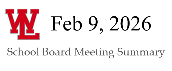 This document is my summary of the public school board meeting, not the official meeting minutes. My personal thoughts and opinions are given in italics and represent my own views which do not necessarily reflect those of any other member of the school board. I identify myself as Mumford in the summary but use first person when describing my personal thoughts and opinions. Previous agendas, minutes, and audio recordings can be found at the WLCSC website.